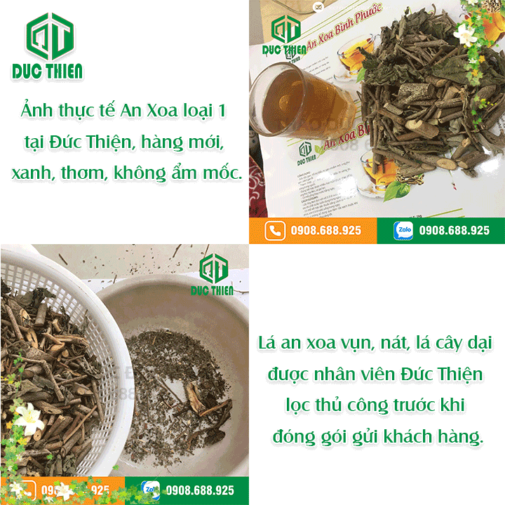 ⇒ Ngoài An Xoa, Đức Thiện còn cung cấp tất cả các dược liệu sử dụng kèm như: Cà gai leo, dây thìa canh, xạ đen, chè dây, tam thất, hoa đu đủ và các loại cao dược liệu. Chi tiết tham khảo các gói sản phẩm đi kèm phía dưới hoặc chỉ cần gọi chúng tôi 0908 688 925 hoặc Add Zalo 0908688925.