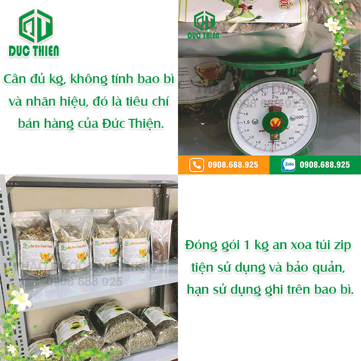 Đức Thiện cam kết cân hàng đủ KG, đóng túi zip cẩn thận, tiện sử dụng