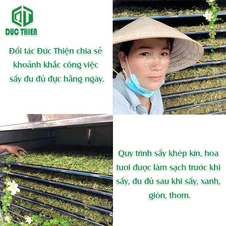 Hình ảnh đối tác của Đức Thiện chia sẻ công đoạn sấy lạnh hoa đu đủ đực